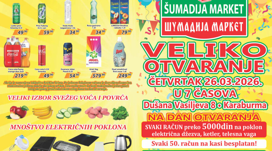VELIKO OTVARANJE – Četvrtak 26.03.2026. u 7 časova, Dušana Vasiljeva 8 – Karaburma